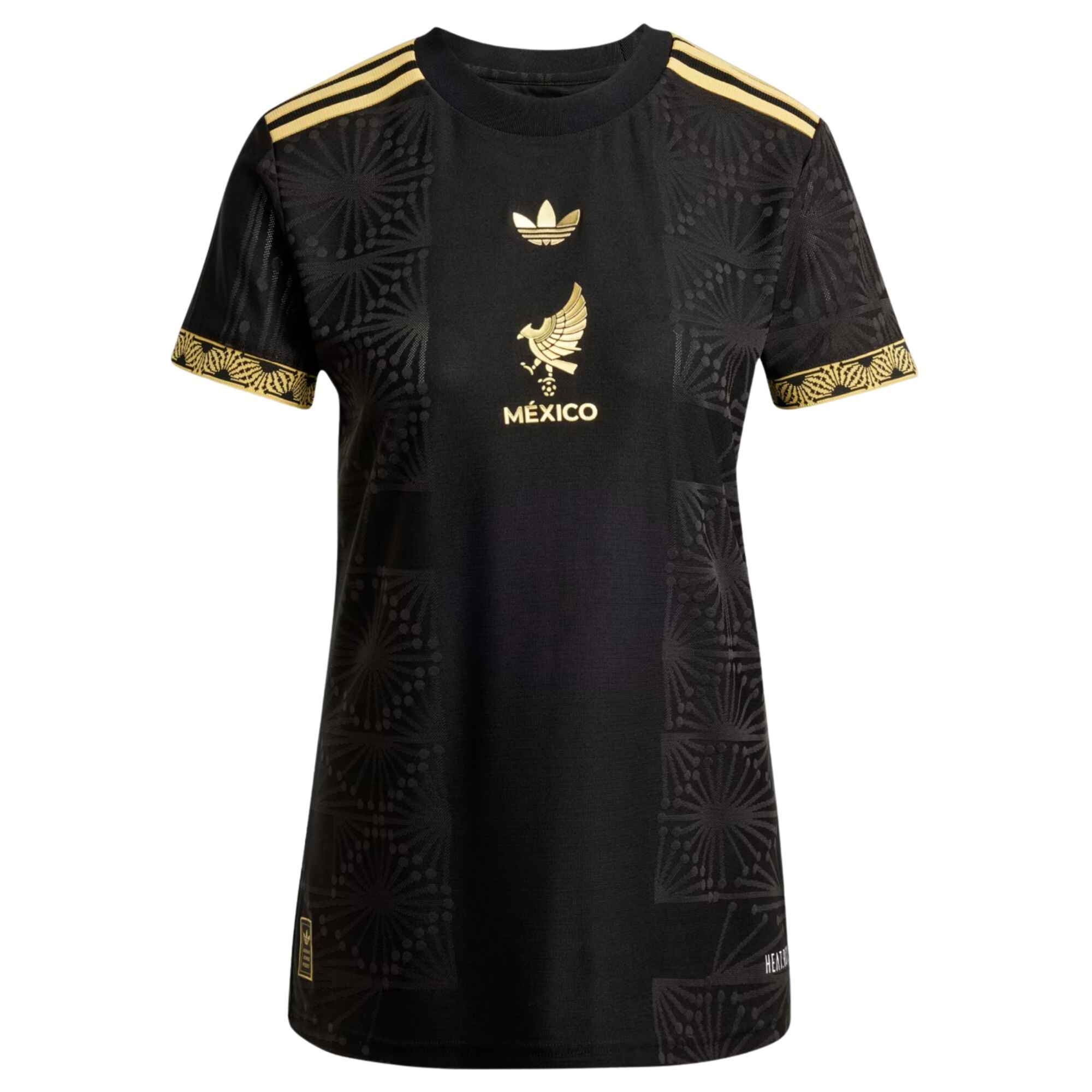 With a striking gold base and Aztec-inspired graphics, this jersey turns heads and tells a story. Built with Adidas’ lightweight AEROREADY fabric, the women’s fit provides comfort and breathability from the stands to the streets. Featuring the bold Mexico crest and signature three stripes, it’s a proud expression of national identity.