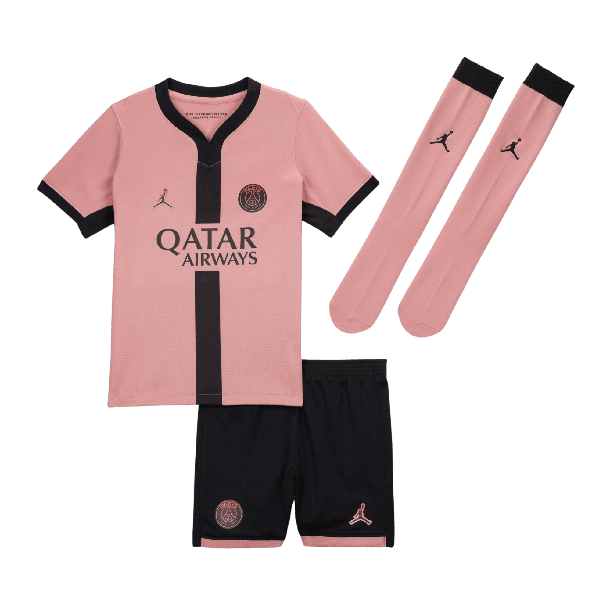 Paris Saint-Germain—proudly known as Les Parisiens—continues to influence football culture with its blend of ambition and Parisian style. The 24/25 Kids PSG Third Kit reflects that spirit, giving young fans a design that mirrors the forward-thinking identity of their favorite club.