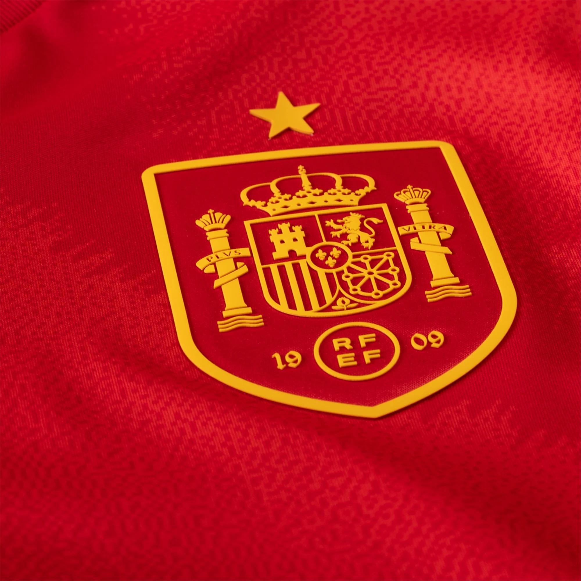 Tailored to complement your unique style, the 24/25 Spain Home Jersey affirms your allegiance to greatness. Whether cheering from the stands or dominating the pitch, embody the spirit of champions and España with every wear.