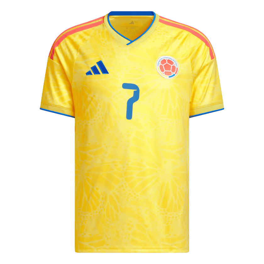 This 2026 home jersey features the vibrant impact-yellow base that defines Colombia’s look. It’s accented by bold blue and red touches inspired by the national flag. A subtle butterfly‑pattern graphic is woven into the fabric — a nod to Colombia’s deep cultural roots and natural beauty. The lightweight, performance‑engineered material ensures you stay cool whether you’re cheering from the stadium, watching at home, or out and about.
